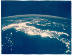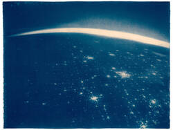 Daniela Keisers Cyanotypien sind Sinnbilder der künstlerischen Erforschung einer Wirklichkeitsstruktur, in denen sich wechselweise Natur und Kultur, Politik, Wirtschaft und Wissenschaft über Landesgrenzen und über die Zeiten leuchtend blau durchdringen. Der einstige Steinbruch Panská skála ist eben auch ein ehemaliger Wirtschaftsstandort, der seine heutige Erscheinung als Naturdenkmal gerade der ökonomischen Nutzung verdankt. Und die „Blaue Banane“ verweist nebenbei auf die gelbe Frucht, die wie nur wenige Lebensmittel zum Inbegriff eines globalisierten Agrarproduktes wurde. Angesichts des Krieges in der Ukraine gewinnt das Gesamtprojekt „Blue Links“, das künstlerisch und kuratorisch Bilder verschiedenster Motive in einen länderübergreifenden Zusammenhang stellt, an Aktualität, denn die blauen Prints von Orten und Dingen, von der Erde und Europa aus dem Weltall machen aufmerksam auf die Schönheit aber auch Verletzlichkeit unseres Kontinents.