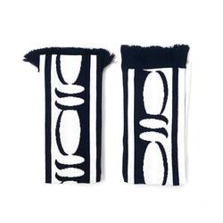 Ähnlich verhält es sich mit dem Perlstabmotiv, das in anderen Farben in den Ornamentbändern wiederkehrt und womöglich zur gleichen Zeit mit einem Grafikprogramm bearbeitet wurde. Hierzu lässt sich der Produktbeschreibung entnehmen, dass man sich mit dem Perlstabschal dekorieren möge: „Decorate yourself with a Bead and Reel scarf“ [Schmücke dich mit einem Perlstabschal]. Ob es sich um eine bewusste Anspielung auf Perlenketten handelt, die ebenfalls um den Hals getragen werden, muss offenbleiben.