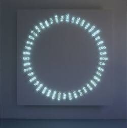 Die Neonskulptur Frozen Sky thematisiert mit ihren 45 aus jeweils drei Buchstaben bestehenden Codes, den Abkürzungen großer internationaler Flughäfen, die im Kreisrund angebracht an ein Ziffernblatt erinnern, die anhaltende Vergänglichkeit heutigen urbanen Lebens. Die Zentren der Welt werden in einer bewegten Konstellation gezeigt, was universelle Fragen anspricht: nach dem Vergehen der Zeit, der Planung der Zukunft, dem Ergreifen des Augenblicks, nach unerwarteten Begegnungen und der Vernetzung.