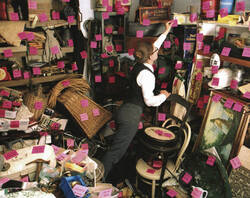 Janet Grau zeigt in ihrer Serie inszenierter Fotografien Personen, die mit der Pflege ganz verschiedenen Sammlungsgutes beschäftigt sind. Säuberlich führen sie Listen und widmen sich den einzelnen Objekten, und seien sie noch so klein. In ihrer Hingabe unterscheiden sie sich darin wenig von dem kleinen Jungen, der inmitten der ausgestopften Tiere sorgfältig sein Plüschtier studiert. Exemplarisch sind in den Fotografien Handlungen nachgestellt, die zur musealen Arbeit des Bewahrens gehören. Nicht zuletzt in dem Titel des Projekts, „Pflege: Zwischen Zwangshandlung und kultureller Heldentat“, drückt sich der ironische Blick der Künstlerin auf diese von außen zuweilen absurd wirkenden Tätigkeiten aus.