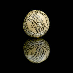 Diese mit einem Gebet handbeschriebene Erbse ist ein eindrucksvolles Dokument religiös motivierter Volkskunst. Moritz Schubert schenkte dieses Objekt dem Museum im Herbst 1989. Ein großer Glücksfall für das Museum war auch der Brief, den der Verfertiger dem Objekt beilegte. Denn nicht nur die Erbse selbst ist außergewöhnlich; auch die Umstände der Entstehung dieses Kunstwerkes sind kurios.