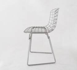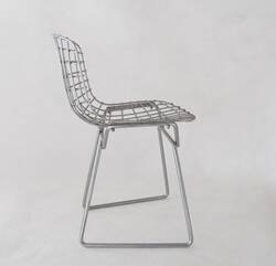 In den Jahren 1950 bis 1953 arbeitete der aus Italien stammende Bildhauer Harry Bertoia (1915-1978) an einer Reihe von Sesseln und Stühlen aus Stahldraht für den Möbelhersteller Knoll. Neben dem berühmten „Diamond Chair" entstammt dieser Serie auch der hier gezeigte Kinderstuhl.