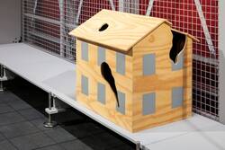 - Holzkonstruktion, teilweise bemalt