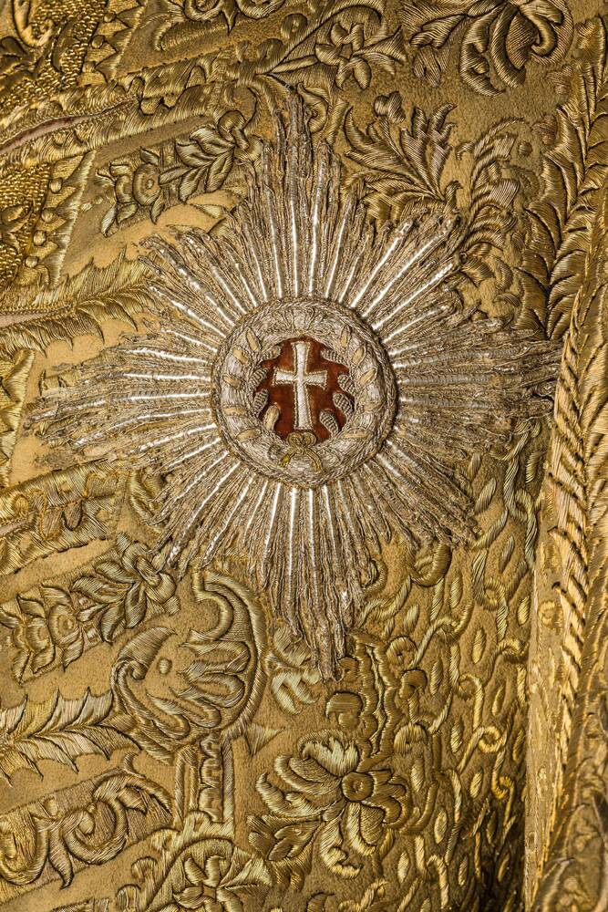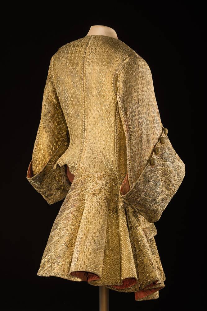 Die persönliche Bagage des Königs gehörte ebenfalls zur Beute der Schweden. Den sächsischen Truppen gelang es jedoch, einen Teil des königlichen Gepäcks zurück zu erobern. Darunter befand sich auch dieser kostbare Rock, der von den schwedischen Soldaten bereits beschädigt wurde. Der Rock gehörte zu den Gewändern der königlichen Garderobe, die August der Starke selbst zur Aufbewahrung bestimmte. Sieben Jahre später, 1709, als er im Nordischen Krieg auf die Siegerstraße gelangte, ließ August der Starke ein fast identisches militärisches Staatskleid anfertigen. Es ist in Vitrine 8 ausgestellt.