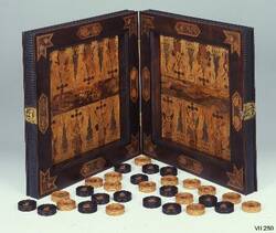 Im Inneren dieser Brettspielkassette befindet sich ein Trictrac-Spiel, auf der Rückseite ein Schachbrett. Vorne auf der Außenseite der Kassette ist die Schlacht von Zama, die große Entscheidungsschlacht des Zweiten Punischen Krieges zu sehen. Dort besiegte der römische Feldherr Scipius Africanus 202 v. Chr. seinen Feind Hannibal, der zuvor mit Elefanten über die Alpen gekommen war und Rom bedroht hatte.
