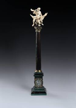 Die Säule schufen unbekannte Künstler, während die Elfenbeinfigur des energievollen Göttervaters Zeus von Balthasar Permoser stammt.
