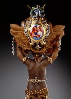 - Rhinozeroshorn, Gold, Silber, Email, Diamanten, Barockperle