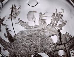 Die dänische Flagge allerdings ist eine spätere Ergänzung, vielleicht zu Ehren des Königs von Dänemark, der 1709 zu einem Besuch nach Dresden kam. Später hinzugefügt wurde auch das goldene Querband im Inneren des Schiffsrumpfes mit einem bekrönten Monogramm August des Starken. Sie sehen, wie solche Kunstkammerobjekte immer wieder auch für die dynastische Repräsentation benutzt wurden. Mailand war seit Mitte des 16. Jahrhunderts das Zentrum des künstlerischen Kristallschnitts.