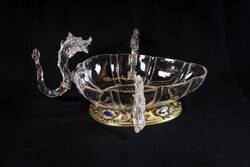 Marius Winzeler: Nein, die meiste Zeit standen sie vermutlich nur als prachtvolle Dekoration da, ohne Obst. Bergkristall ist einfach viel zu empfindlich. Außerdem kam so der Kristallschnitt viel besser zur Geltung, wie dieser wahnsinnig tolle Delfinkopf am Henkel.