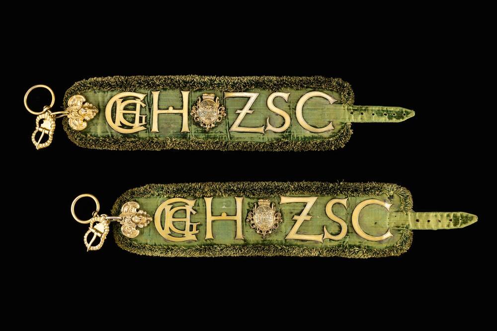 Oder schaut euch die Serie gleichartiger großer Halsbänder mit den Buchstaben CHGHZSC. Es gab einst 16 davon, heute sind zehn erhalten. Die Initialen stehen für die Brüder Christian II. und Johann Georg (I.) von Sachsen.