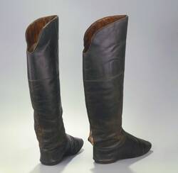 Christine Nagel: Unter den Inventaren der Rüstkammer gibt es auch ein Büchlein aus dem 19. Jahrhundert, in dem die Schuhsammlung der Rüstkammer verzeichnet ist. Dort steht unter der Nummer 2: "Stiefel, welche Napoleon am Tage der Schlacht bei Dresden, den 27.ten August 1813 getragen [hat]." Daher wissen wir, dass die Stiefeln Napoleon Bonaparte, dem französischen Kaiser, gehört haben und er diese während einer Schlacht in der Umgebung von Dresden getragen hat.