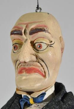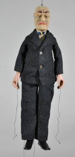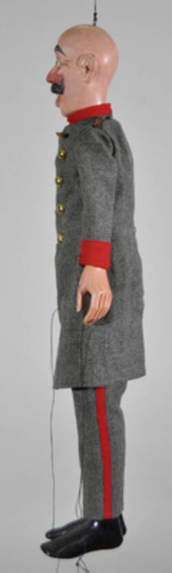Diese Marionette stammt aus der Zeit des Ersten Weltkriegs und wurde von Richard Lipinski (1867-1936), einem Gewerkschafter und Politiker des linken Flügels der SPD, zu Agitationszwecken genutzt, also zur gezielten politischen Beeinflussung und Mobilisierung.