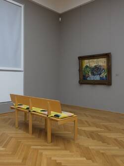 Sie dürfen auf allen Bänken gerne Platz nehmen, entspannt die Werke an der Wand betrachten und Sie dürfen sich auch unterhalten. Das Albertinum ist keine „heilige Halle für die Kunst“, es versteht sich als Ort der Begegnung und des Austausches. Dafür steht das Werk der 1974 in Paris geborenen Künstlerin.