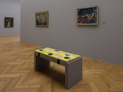 Bänke im Museum sind normalerweise eines: unauffällig. Nichts soll die Kunst beeinträchtigen. So war das auch im Albertinum, bis Céline Condorelli die Einladung zur „Intervention“ bekam. Sie recherchierte, suchte im Depot, fragte Mitarbeiterinnen und Mitarbeiter nach ausrangierten Stücken und verwandelte schließlich sechs unterschiedliche Bänke in Kunstwerke, die nun seit 2019 selbstbewusst im Raum stehen. Das siebte Sitzmöbel entwarf sie selbst: die Stahlrohrkonstruktion „Spatial Composition 12“ – ein Hybrid aus Skulptur und Liegestühlen.
