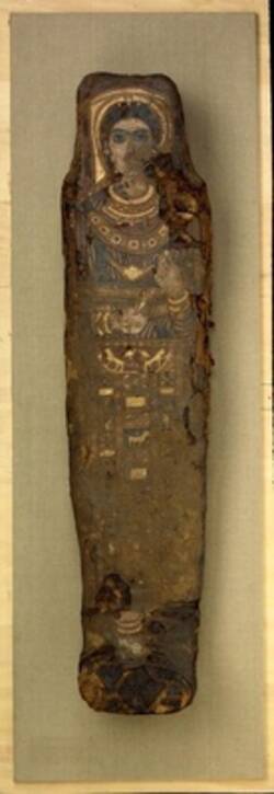 Leinen, Stuck, bemalt und vergoldet; mumifizierter Leichnam