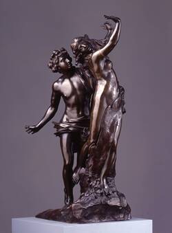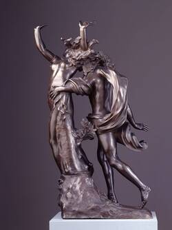 Die Kleinbronze wiederholt die wohl berühmteste Darstellung des Themas, die vom wichtigsten Bildhauer des Barock, Gian Lorenzo Bernini 1622–25 als lebensgroße Marmorgruppe geschaffen worden war.