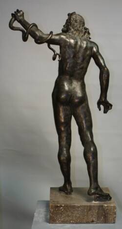 Diese rätselhafte Figur ist ein bemerkenswerter Vorläufer und stellt vielleicht Laokoon dar, so wie man ihn sich vorstellte, bevor die antike Statue 1506 ausgegraben wurde. Es könnte sich aber auch um Äskulap, den Gott der Heilkunst, oder um das Sternbild Serpentarius handeln.