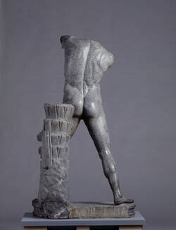 Der graue Boxer ist in mehrerlei Hinsicht ein Ausnahmefall: Zunächst sind antike Statuen von dieser Größe so gut wie nie aus dunkelgrauem Marmor gehauen. Dann ist unser Mann – das ist trotz fehlender Arme deutlich zu sehen – in Aktion dargestellt. Normalerweise zeigen Siegerstatuen ruhende Athleten. Und: Von jener griechischen Siegerstatue, die ursprünglich sicher aus Bronze gegossen war, gibt es nur diese eine Kopie. Gerade die spezielle Ausprägung der Bauchmuskulatur scheint einzigartig zu sein. Von anderen Originalen sind sonst gleich mehrere Kopien, oder besser gesagt: Versionen erhalten, da die Bildhauer der römischen Kaiserzeit auf einen fest etablierten Pool griechischer Vorbilder zurückgriffen.