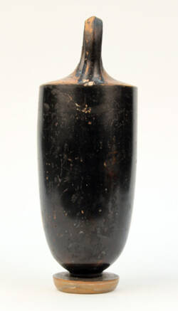 Seit dem 5. Jahrhundert kennen wir auch farbige Malereien auf weißem Grund. Diese Lekythen verwendete man ausschließlich im Grab- und Totenkult. Sie enthielten Duftöle, mit denen man den Leichnam salbte und das Grab besprengte; nicht selten gelangten die Lekythen als Opfergabe mit in das Grab. Die Darstellungen auf den Gefäßen beziehen sich oft auf den oder die Verstorbenen. Sie zeigen allerdings kein realistisches Abbild, sondern stilisierte Figuren, die ruhig und fast emotionslos dargestellt sind. Die Grabgefäße wurden in den Werkstätten in großen Mengen vorgefertigt, so dass sie im Todesfall schnell abgeholt werden konnten.