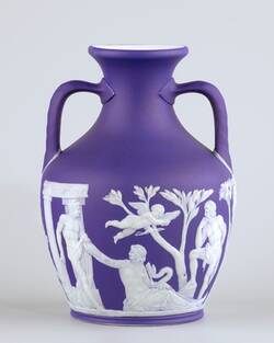 Der ebenso innovative wie geschäftstüchtige Töpfer Josiah Wedgwood arbeite ab 1786 an einer genauen Kopie der Vase. Hierfür entwickelte er ein neues keramisches Material: die sogenannte Jasperware, vielfältig einfärbbares Steinzeug – in diesem Fall blau. Von nun an konnte die Portland-Vase dank der neuen keramischen Rezeptur in großer Anzahl, quasi industriell reproduziert werden. Im Besonderen der Enkel Josiah Wedgwoods nahm um 1839 die Produktion dieser Vasen in verschiedenen Größen intensiv auf.
