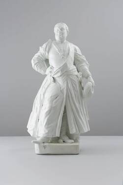 Natürlich auch ein Kunstwerk, war diese Statuette vor allem ein politisches Statement: Der Sachse auf dem polnischen Königsthron lässt sich in der traditionellen Tracht des polnischen Adels, dem weiten Mantel mit Schärpe und Ledergürtel, darstellen. Statt der damals üblichen Perücke trägt er einen tonsurartigen Haarschnitt. Die Figur ist nach dem offiziellen Herrscherportrait von Louis de Silvestre gefertigt. Es wurde in einer beträchtlichen Anzahl an Repliken und Kopien in Polen verbreitet, um an das Nationalgefühl zu appellieren.