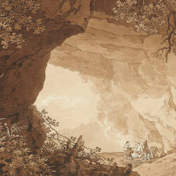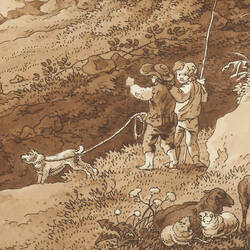 - Umrissradierung, partiell Aquatinta, braun laviert