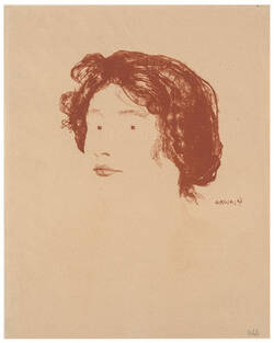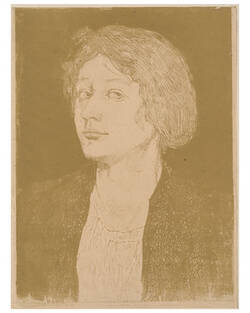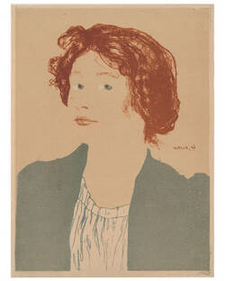 Sollen mehrfarbige Lithografien gedruckt werden, muss für jede Farbe ein eigener Stein vorbereitet werden. Emil Orlik (1870-1932) komponierte das Blatt „Mädchenkopf“ in den Farben olivgrün, blau, rot und weiß. Demnach waren vier Druckvorgänge nötig, die in genauer Abstimmung das fertige Bild ergaben.