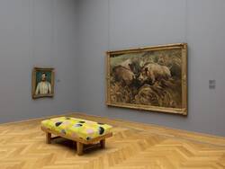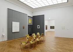 Normally, the seating in museums is designed, first and foremost, to blend in and leave the art works to speak for themselves. In the Albertinum, that was just the same – until we invited artist Céline Condorelli, born in Paris in 1974, to create an art intervention here. She conducted research into seating areas in the museum, explored the storage facilities, and asked staff about items removed from the display. Then she transformed six benches from different periods into artworks. Since 2019, these renewed benches have been integral elements of the galleries. She also designed a complementary seventh element herself. Her Spatial Composition 12, a steel tube construction, is a hybrid of sculpture and deck chairs.