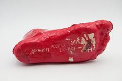 His sculpture Muett Pour Le Souper Du Roi (“Silence for the King's Supper”) presents two feet, one painted red. The title presumably references the Symphonies pour les soupers du Roi – music performed during royal dinners in France, symbolizing the opulence and status of the monarchy starting from the Middle Ages. The feet may symbolize the act of kneeling before a sovereign, possibly reflecting the artist’s critique of contemporary leaders who maintained relations with dictatorships in countries like South Africa and Spain.