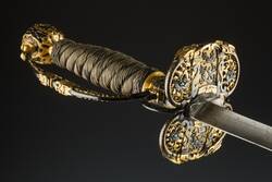 A set consisting of sword and cane, plus a hunting hanger with a slightly curved blade. In the 18th century, an ensemble like this one was an essential accoutrement for any sovereign with an eye for fashion. These sophisticated objects were made by Japanese artisans for the European market.