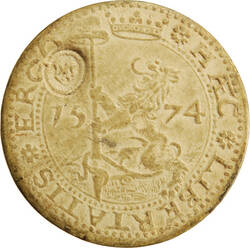 Until the 19th century, gold, silver and copper were the main coinage metals. However, in wartime, the supply of ordinary coins in a town under siege could quickly run out. To carry on paying the soldiers and keep trade ticking over, the authorities would issue temporary emergency money – usually made of an alloy of lead and tin, or of iron. Or, as in this case, of parchment. This particular siege coin was issued by the city of Leiden.