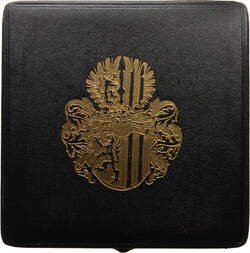 Shown on the left, the original of this Honorary Commemorative Medal of the state capital Dresden from 1944 was awarded to the author Gerhart Hauptmann. This medal of merit was only struck in very small numbers. It was one of the last pieces created by Friedrich Wilhelm Hörnlein. For more than three decades, he worked as an engraver at Saxony's state mint in Muldenhütten.