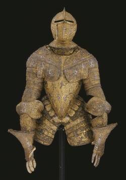 The armour, which includes a second, interchangeable breastplate, was a present: once again, for Elector Christian I. This time the present came not from a member of his own family but from the Italian Duke Carlo Emanuele I of Savoy. The gift of this precious armour was intended to cement the good relations that already existed between the House of Savoy and the princes of Saxony. It must have caused a sensation when it arrived in Dresden in 1588.