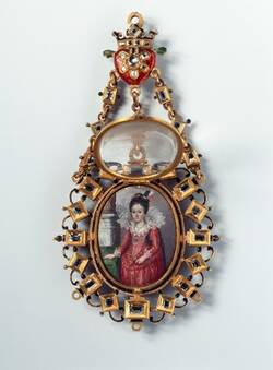 - Gold, enamel, 112 diamonds, miniature oil painting on gold