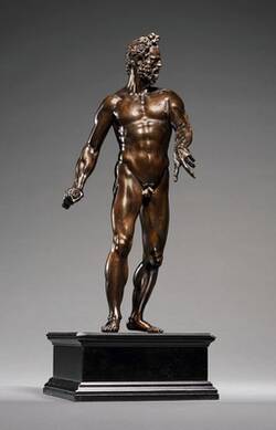 This exquisite small bronze came to Dresden as a personal gift from Giambologna to Elector Christian I in 1587. In heroic nudity, armed only with a sword (the right hand holds the hilt of the lost weapon), the god of war commands awe through his all-dominating pose and appears as a symbol of lordly sovereignty. The statuette is the earliest documented casting of the model. It was restituted to the Wettin family in 1924 and was acquired back in 2018.