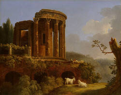 Shortly after Hackert settled in Rome in 1769, he visited Tivoli, to the east of the city. With its waterfall and ancient buildings, it was one of the major attractions for many travellers to Italy. He painted the famous round temple consecrated to the goddess Vesta, as guardian of the holy fire, amidst an ideal yet natural-looking landscape. His painting is an atmospheric combination of architecture and nature. Over the course of his career, he repeatedly made use of motifs inspired by Tivoli.