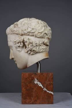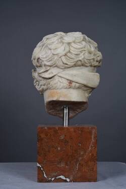 The bronze statue of Apollo created by Polykleitos was approximately 1.85 metres tall and was probably melted down in the post-ancient period. Nevertheless, numerous copies dating from between 100 BCE and 200 CE have been preserved. These copies indicate that Apollo did not hold a bow and arrow in his hands, as was the case for many other statues of this god, but was instead depicted tying a ribbon around his head with its abundant hair.