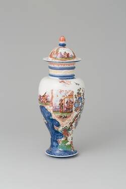 The decorations on these vases are seemingly Chinese – from the figures playing music in front of a large pagoda to traders with exotic wares. Yet all the compositions spring from the imagination of Johann Gregorius Höroldt, a Meissen porcelain artist who had never been to China. At that time, his chinoiserie scenes, as they are known, were much in demand across Europe. They reflect the European idea of China as the ideal of a state with exceptionally cultivated people living in a paradise of abundance and leisure.