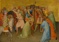 This painting by the Florentine artist Bernardo Daddi was probably part of an altar. It depicts the martyrdom of St. Reparata, a patron saint of Florence. For reasons which have yet to be established, the saint was later painted over on this small Dresden panel, turning her into a monk.