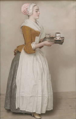 При всей популярности мотива мы не знаем, как зовут изображенную девушку – моделью для этой пастели послужила безымянная горничная из Вены. Чем популярнее становилась картина, тем чаще предпринимались попытки приписать шоколаднице сказочное происхождение, например, сделать ее принцессой.
